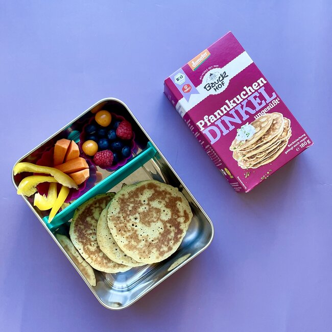 Die demeter-Dinkel Pfannkuchen sind deine perfekte Geheimwaffe. Ohne Zusatz von Süßungsmitteln und ruckzuck zubereitet.