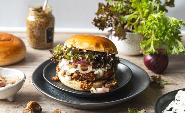 BBQ Burger mit Feigen und Roquefort