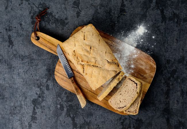 Backofen auf 225 °C Ober- und Unterhitze vorheizen. Alle Zutaten mit einem Schneebesen zu einem glatten Teig verrühren. In eine gefettete 25er-Kastenform füllen und von oben mit viel Wasser glattstreichen. Eine feuerfeste Schüssel mit etwas kochendem Wasser zusammen mit dem Brot in den Ofen schieben.