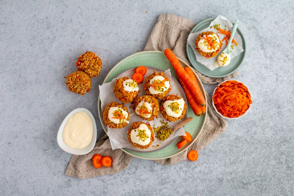 Anschließend die gebackenen Carrot-Cake-Muffins aus dem Ofen nehmen und aus den Mulden des Muffinblechs heben. Vollständig erkalten lassen.