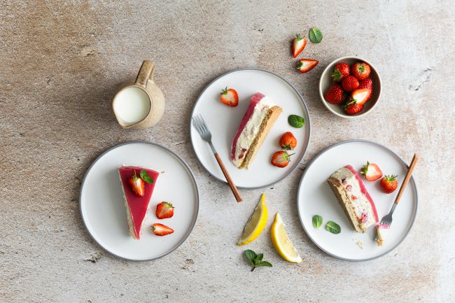 Im Kühlschrank mind. 2 Stunden ruhen und festwerden lassen. Vor dem Servieren die Erdbeer-Mascarponetorte mit Erdbeeren und Minze garnieren und genießen.