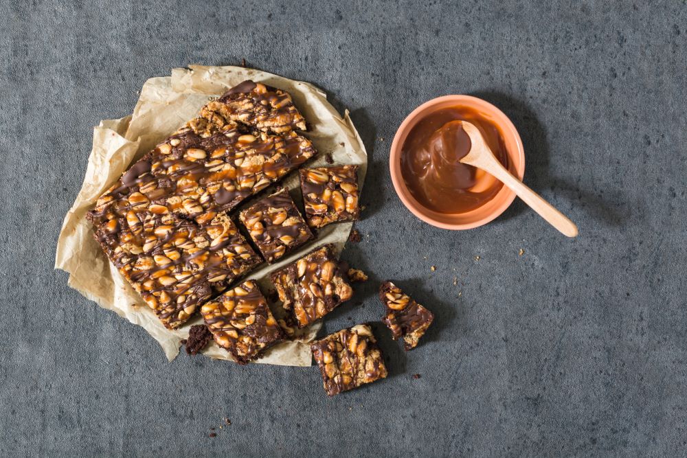 Anschließend 100g gesalzene Erdnüsse über den Teig streuen und leicht andrücken.