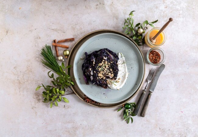 Tipp: Auch ein Apfel-Chutney schmeckt gut zu dem gebackenen Rotkohl.