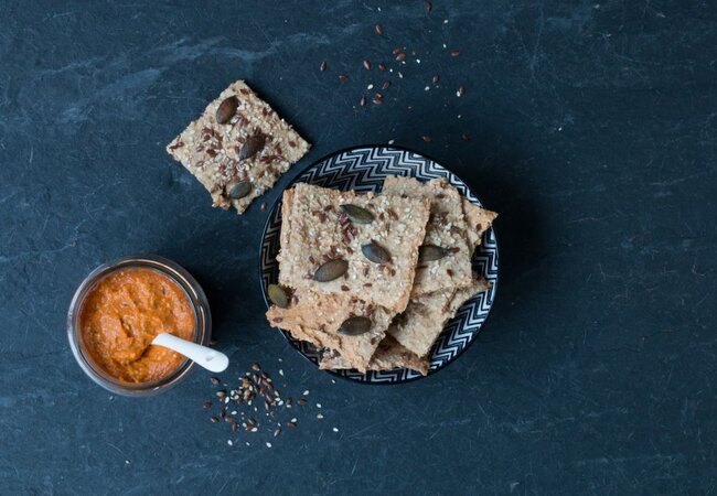 Nach Wunsch den feuchten Teig mit reichlich Saaten und grobem Meersalz bestreuen. Im vorgeheizten Backofen bei 200 °C Ober- und Unterhitze zunächst für 10 Min. backen, dann das Knäckebrot mit einem Messer in die gewünschte Größe schneiden und für weitere 10-15 Min. fertig backen. Mit den anderen Blechen ebenso verfahren.