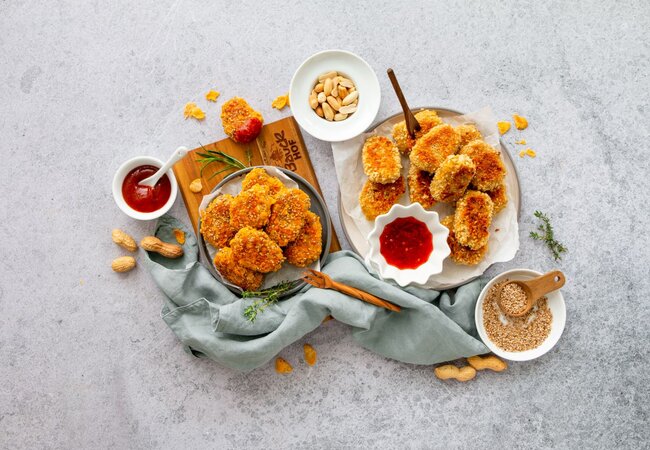 Tipp: Die Erdnuss-Pankonuggets schmecken mit Süß-Sauer-Soße serviert asiatisch lecker.