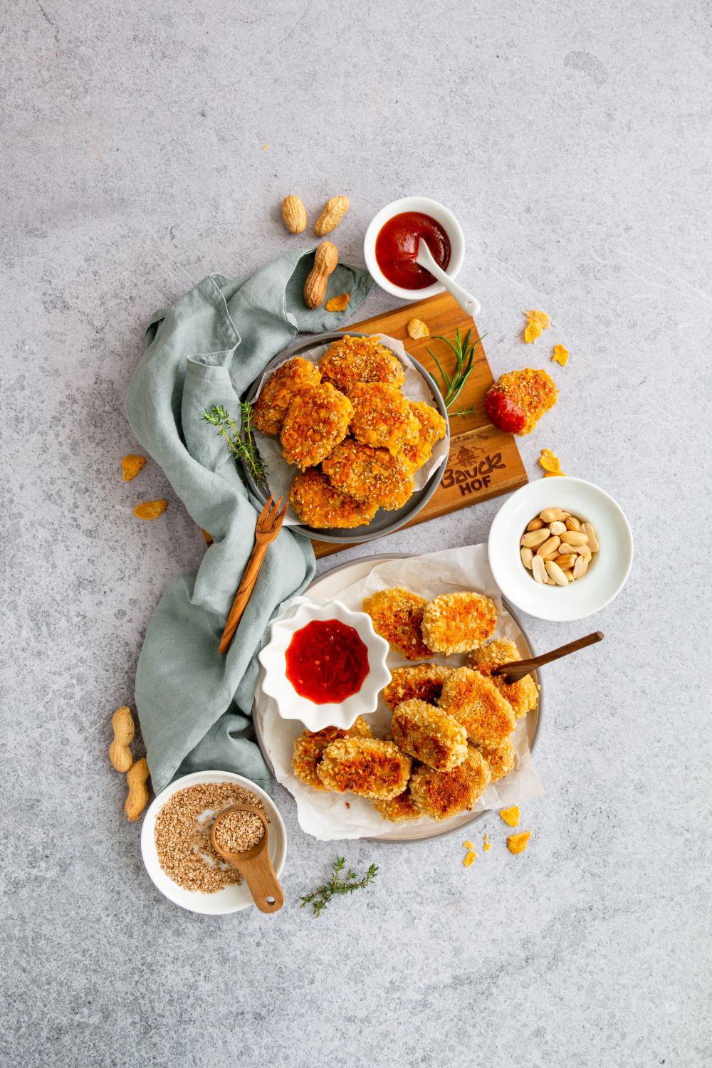 GoldNuggets mit Cornflakes und Erdnuss Panade