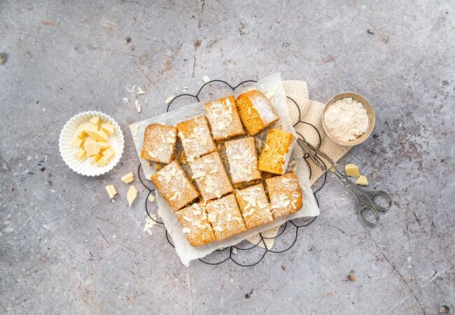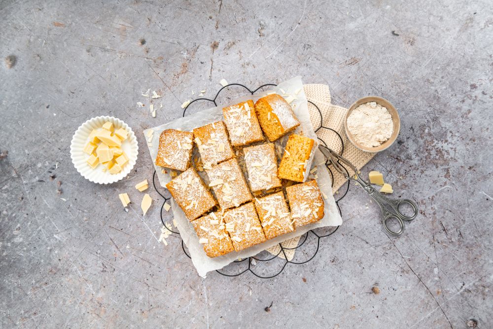 Andere Variante: Natürlich können die Blondies auch als Brownies zubereitet werden – dafür einfach die weiße Schokolade durch Zartbitterschokolade ersetzen und einen EL Kakao hinzugeben.
