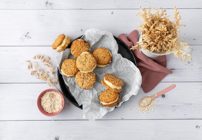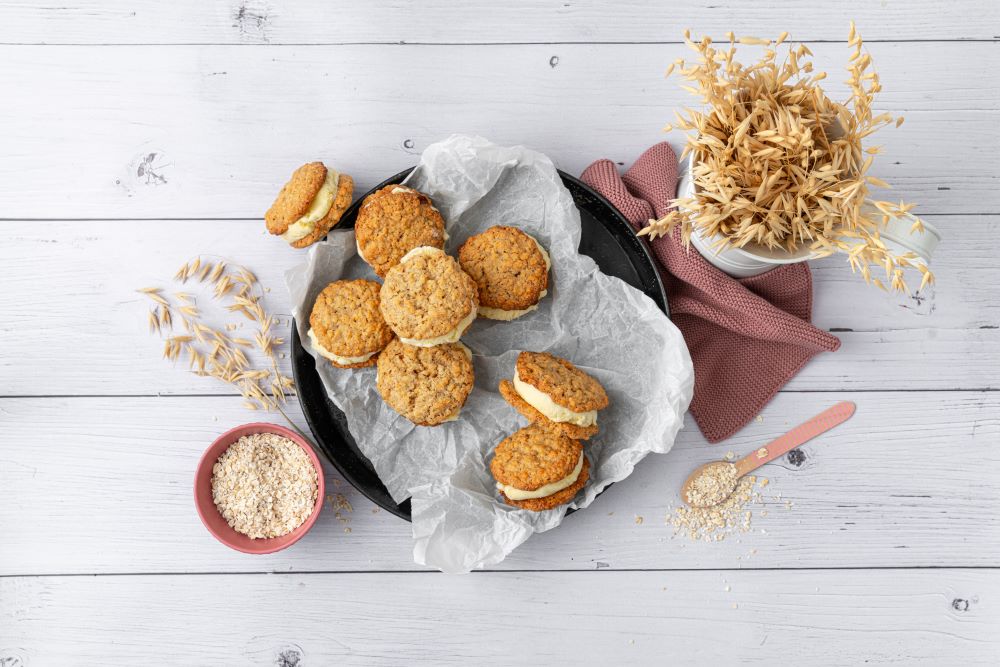 Die Cookies für 10-12 Minuten backen, bis sie goldbraun sind. Alles komplett abkühlen lassen. Dann jeweils eine Kugel Vanilleeis auf einen Cookie geben und einen zweiten Cookie auf das Eis drücken. Sofort wieder einfrieren oder direkt servieren.