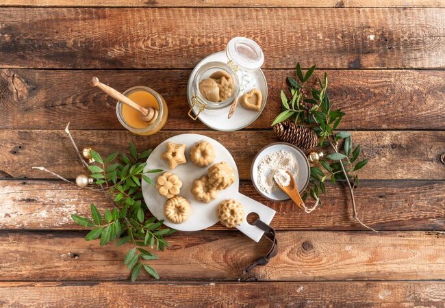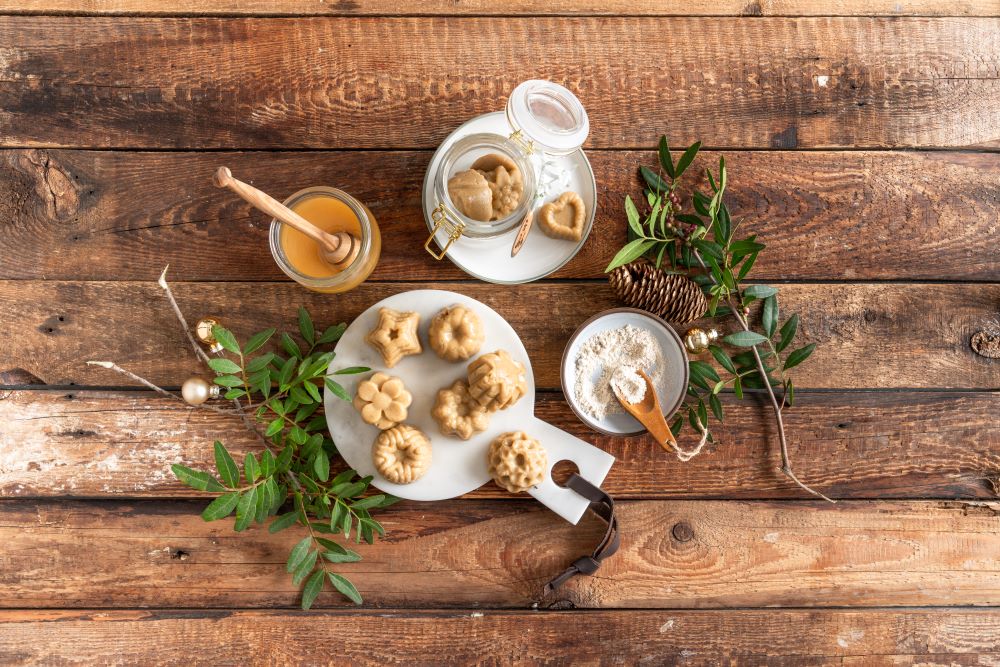 Honig und Nussmus in einem Topf erwärmen, bis alles gut vermischt und flüssig ist. Das Vanilleextrakt und das Mehl hinzufügen. Alles mit einem Holzlöffel gut vermengen. Die Masse ist weich, aber klebt nicht in den Händen.