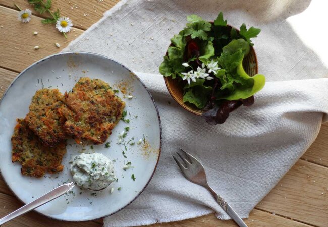 - 3 - 4 EL frische Kräuter wie Petersilie, Schnittlauch, Bärlauch, Giersch