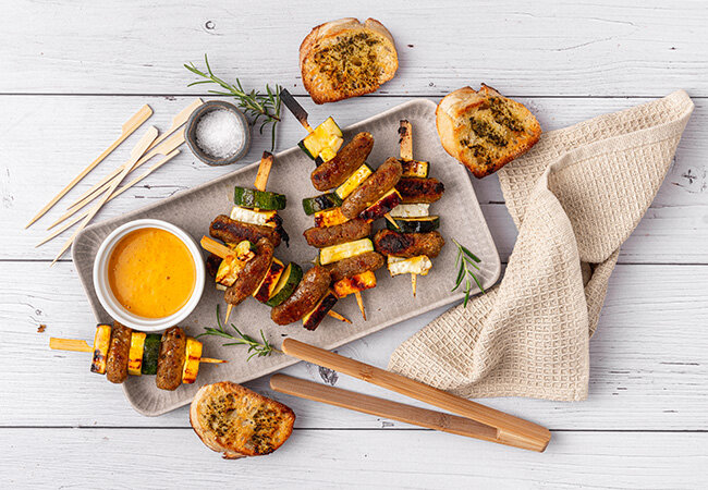 Indische Bratwustspieße mit Zucchini und Paneer