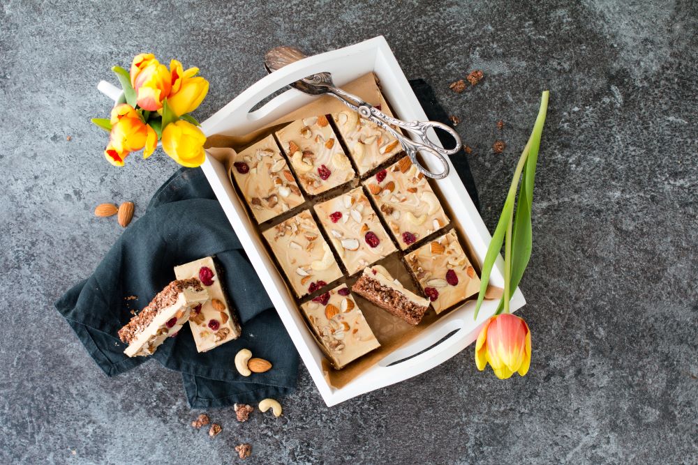 Tipp: Wer möchte, kann statt weißer Schokolade auch Zartbitter-Schokolade verwenden und die Haferschicht mit einer Prise Zimt verfeinern.
