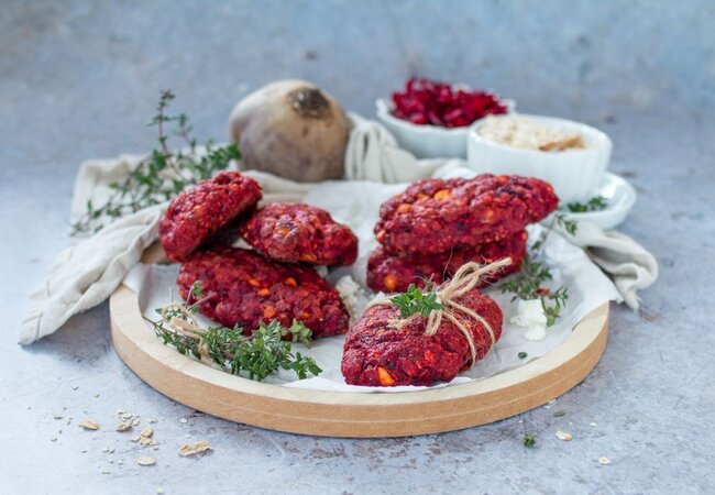 Die Rote-Bete-Brödchen im Ofen auf mittlerer Schiene ca. 35 Minuten backen und vor dem Verzehr auf einem Kuchengitter auskühlen lassen.