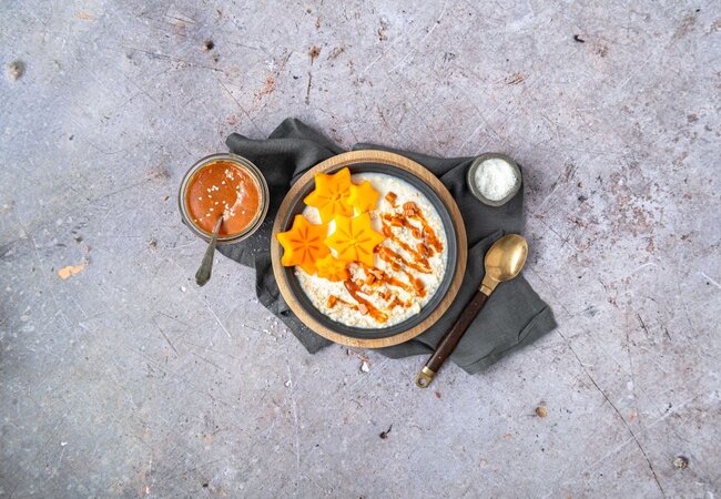 Am nächsten Morgen etwas Karamell über die Overnight Oats geben und mit frischem Obst servieren.