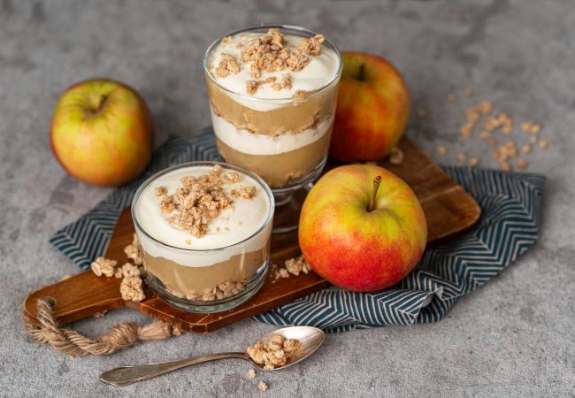 Schichtdessert mit Apfelmus und Hafer Crunchy