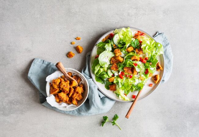Süßkartoffel-Falafel-Croûtons als Salattopping