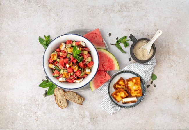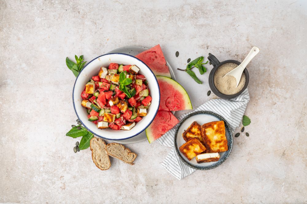 Wassermelonen-Salat mit paniertem Feta
